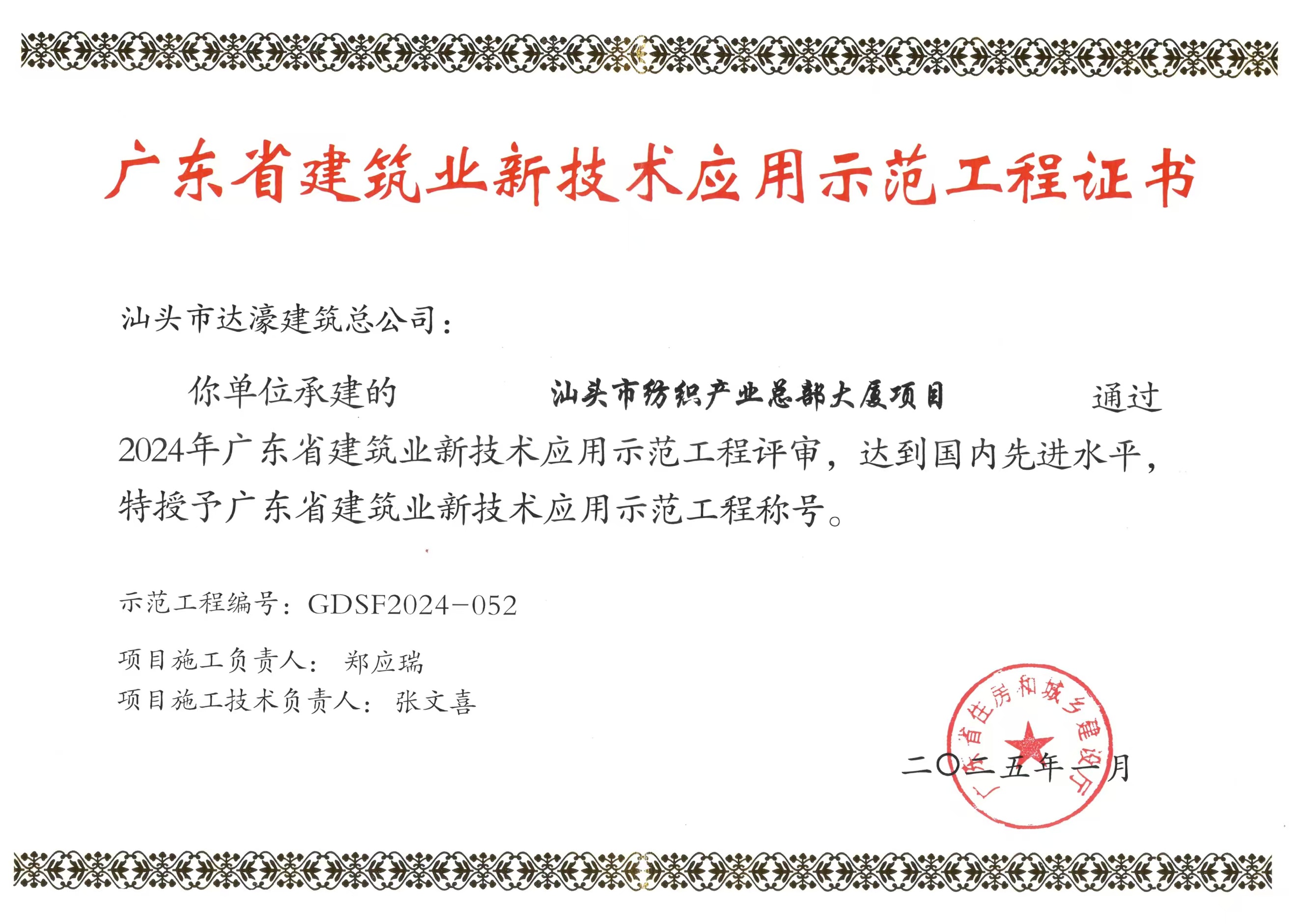 廣東省建筑業新技術應用示范工程稱號